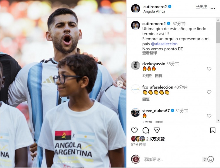 罗梅罗社媒:以胜利结束一年的国家队征程太美妙,很自豪为国出战