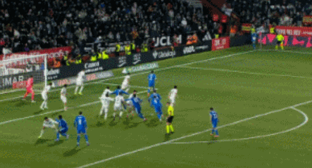 下半场补时第1分钟,皇马右侧角球机会,贡萨洛-加西亚跃起头球得分,皇马2-2扳平!