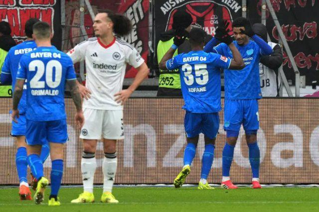 德甲:法兰克福1比3勒沃库森德甲 02-01 01:08德甲第20轮,勒沃库森客场3比1战胜法兰克福。上半场阿图尔、蒂尔曼破门,勒沃库森2比0领先,下半场科赫为法兰克福扳回1球,亚历克斯·加西亚补时为勒沃库森锁定胜局。勒沃库森积35分,排名德甲第6。