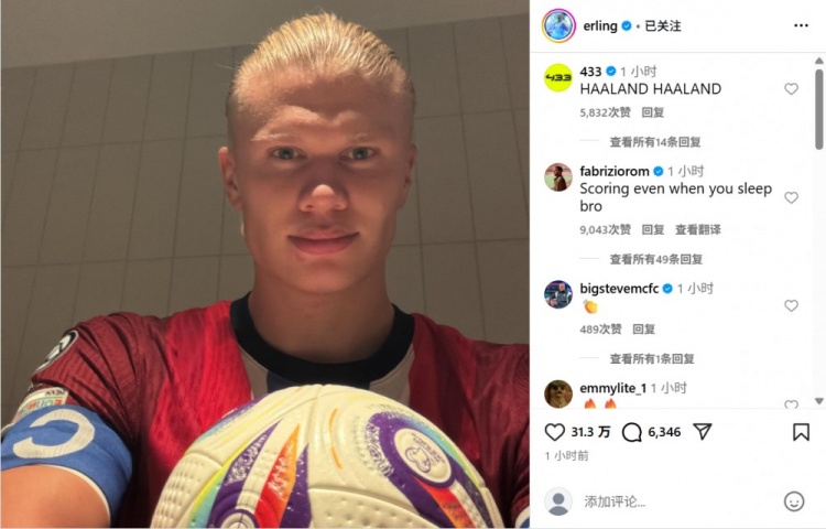 帽子戏法!哈兰德社媒晒出比赛用球但没有配文