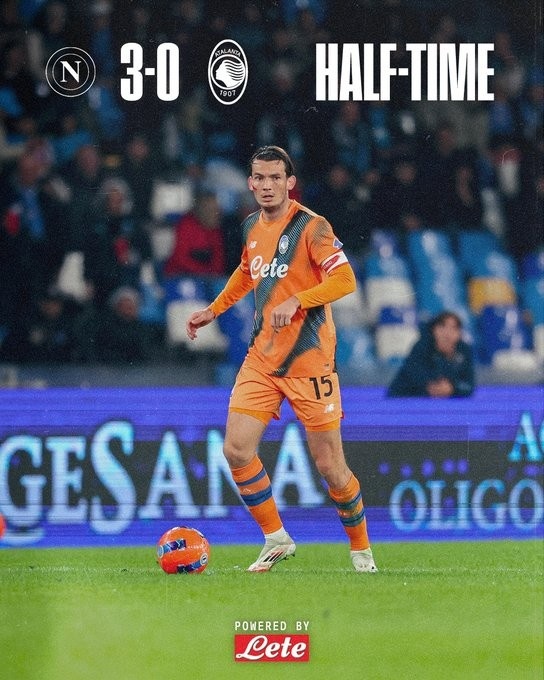 11月23日讯 本轮意甲焦点战,那不勒斯主场上半场3-0领先亚特兰大。